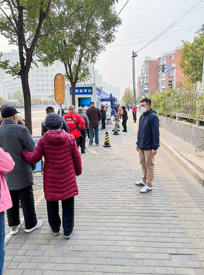 环丰公司职工白晶在广百西路社区核酸检测点维持秩序
